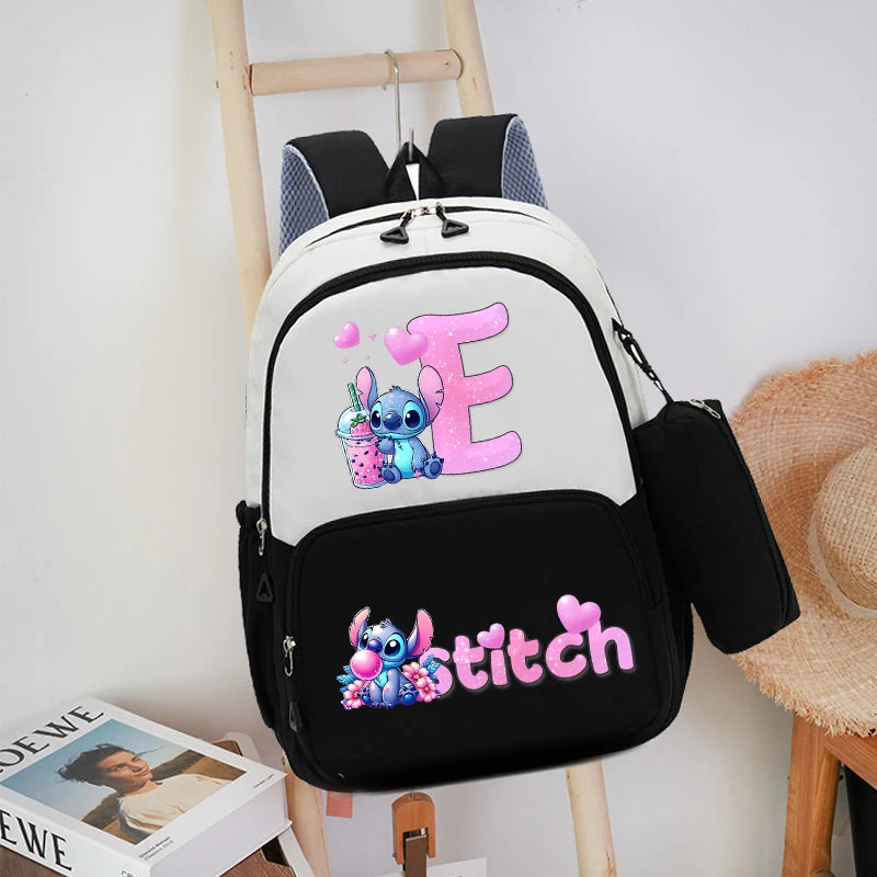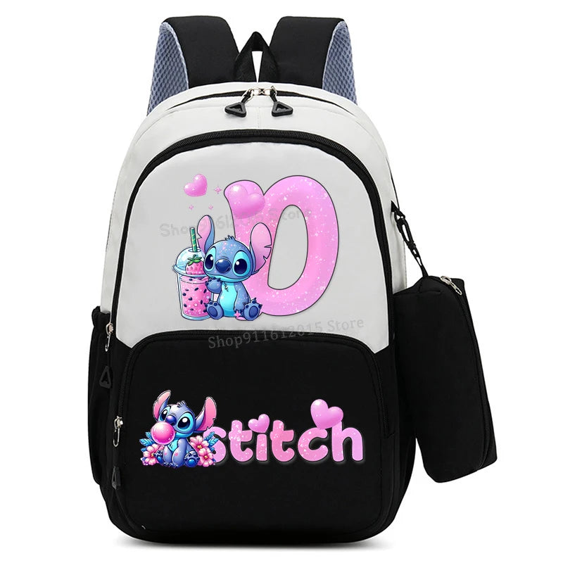 حقيبة ظهر ليلو وستيتش بحروف الأبجدية، حقيبة ظهر عالية السعة للطالبات مع مقلمة، حقيبة مدرسية كرتونية لطيفة، حقيبة أنمي قابل
