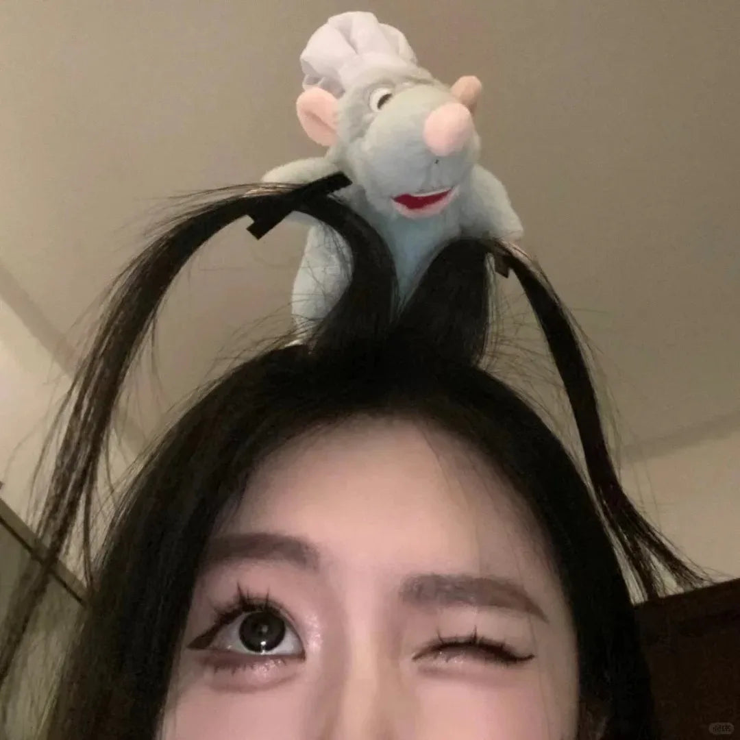 ربطة شعر ديزني راتاتوي – تصميم كرتوني لطيف | دمية قطيفة على شكل الفأر ريمي | إكسسوار للبنات والتصوير