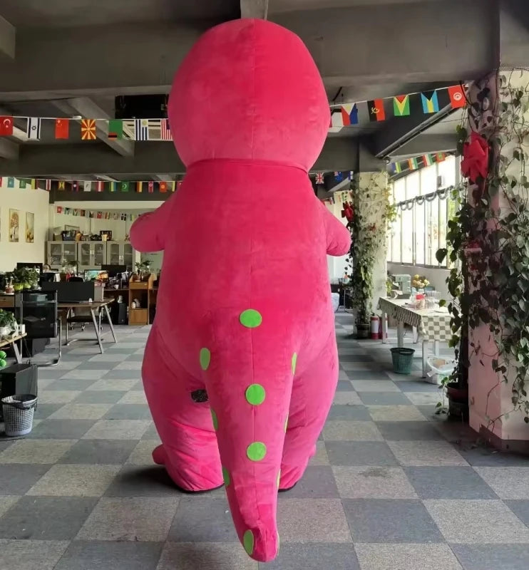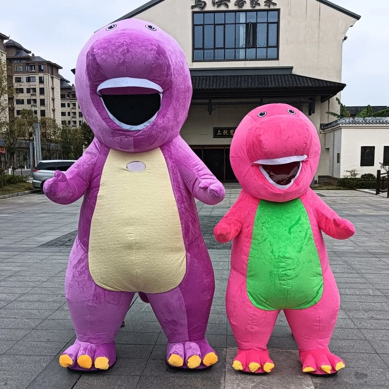 • زي تميمة تنين بنفسجي قابل للنفخ بالكامل بتصميم مستوحى من الشخصيات الكرتونية الشهيرة مثل بارني