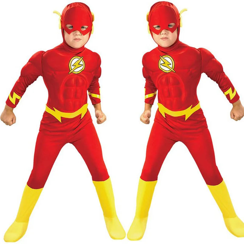 زي تنكري عضلي للأطفال – شخصية رجل البرق | بدلة Jumpsuit بوليستر مذهلة للأولاد