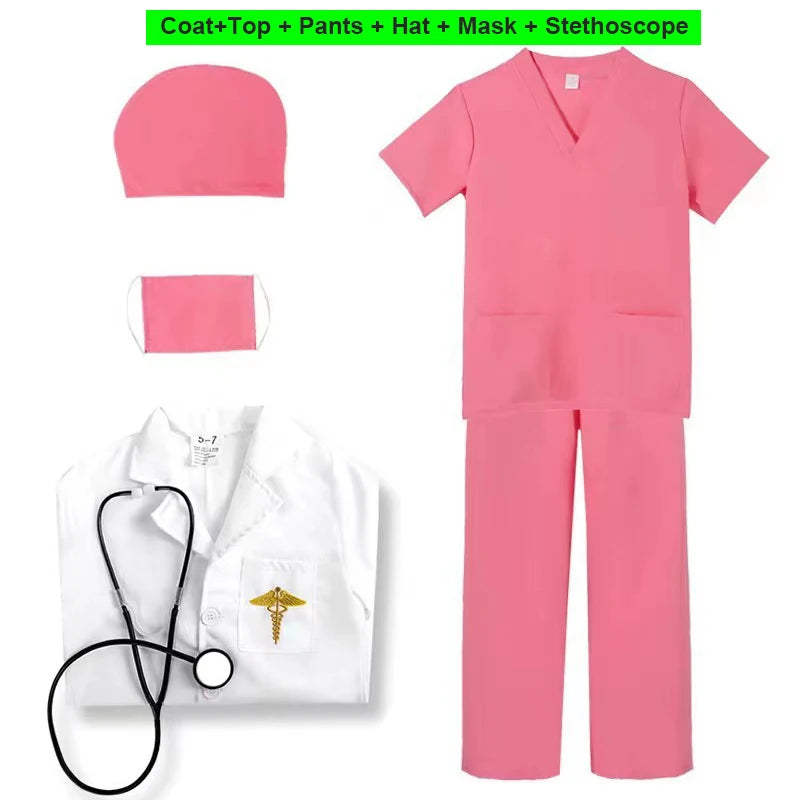 زي تنكري للأطفال – زي دكتور/جراح كامل | قميص، بنطال، ومعطف أبيض | مثالي للهالوين ولعب الأدوار