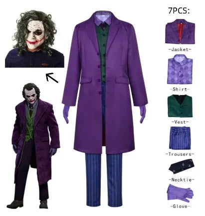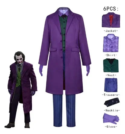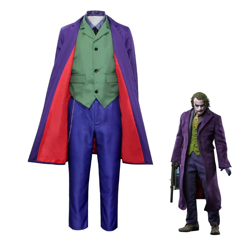 زي تنكري للرجال – الجوكر من فيلم "The Dark Knight" | بدلة كاملة مع جاكيت وباروكة | مستوحى من شخصية هيث ليدجر