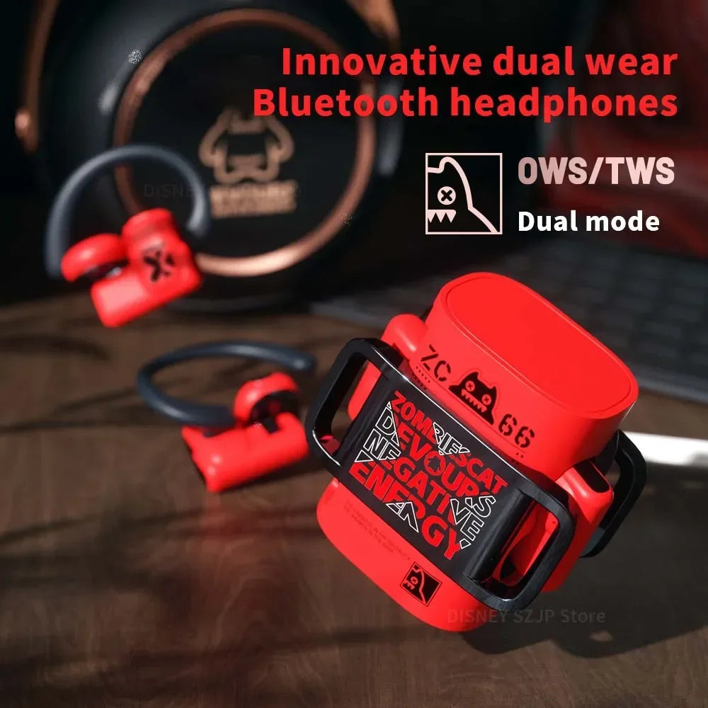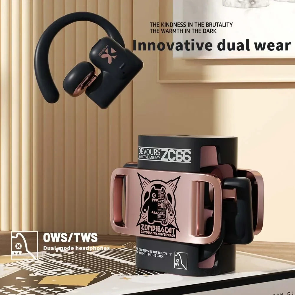 سماعة ZOMBIESCAT B9 بلوتوث 5.4 – نظام مزدوج (OWS / TWS) | صوت عالي + مايك + مقاومة للماء – مثالية للرياضة والمكالمات