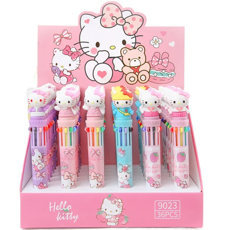 طقم أقلام حبر Hello Kitty – 18 أو 36 قلم بـ10 ألوان، تصميم كرتوني لطيف بضغط علوي، 0.7 ملم للمدرسة والمذكرات