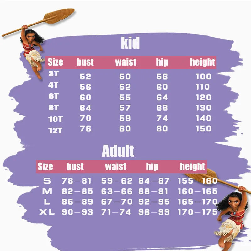 طقم زي تنكري لشخصية موانا (Vaiana) للأطفال – يشمل الفستان، القلادة، والباروكة | مثالي للهالوين والحفلات التنكرية