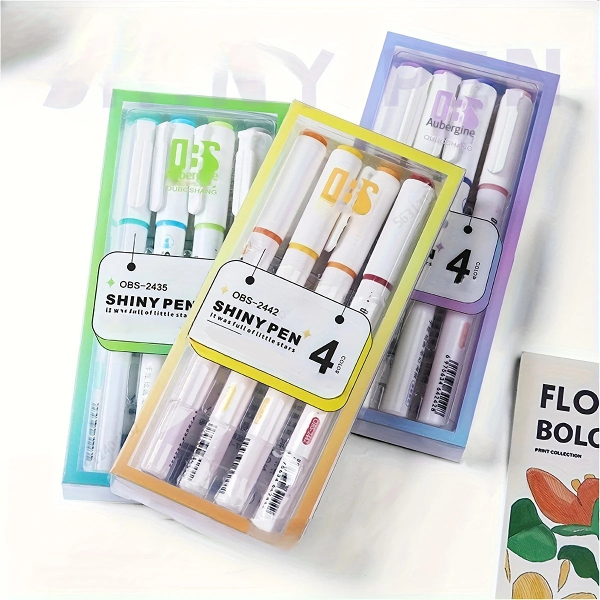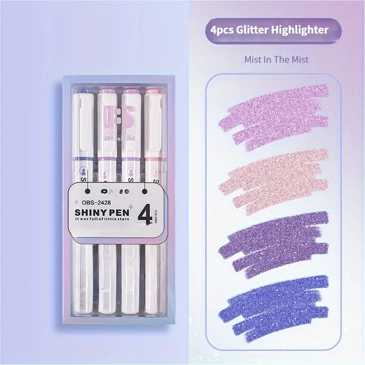 طقم هايلايتر 4 قطع بلمعة الجليتر – ألوان باستيل براقة للملاحظات، التزيين، والدفاتر