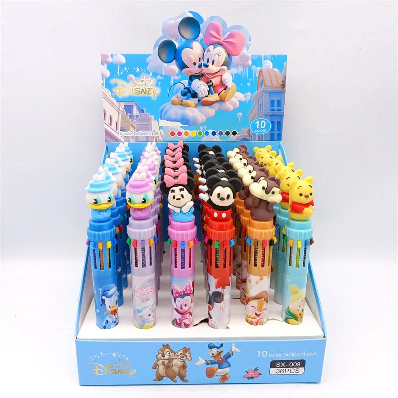 طقم 36 قلم حبر كرتوني – تصميم Disney Mickey بـ10 ألوان في كل قلم، مثالي للمدرسة والهدايا
