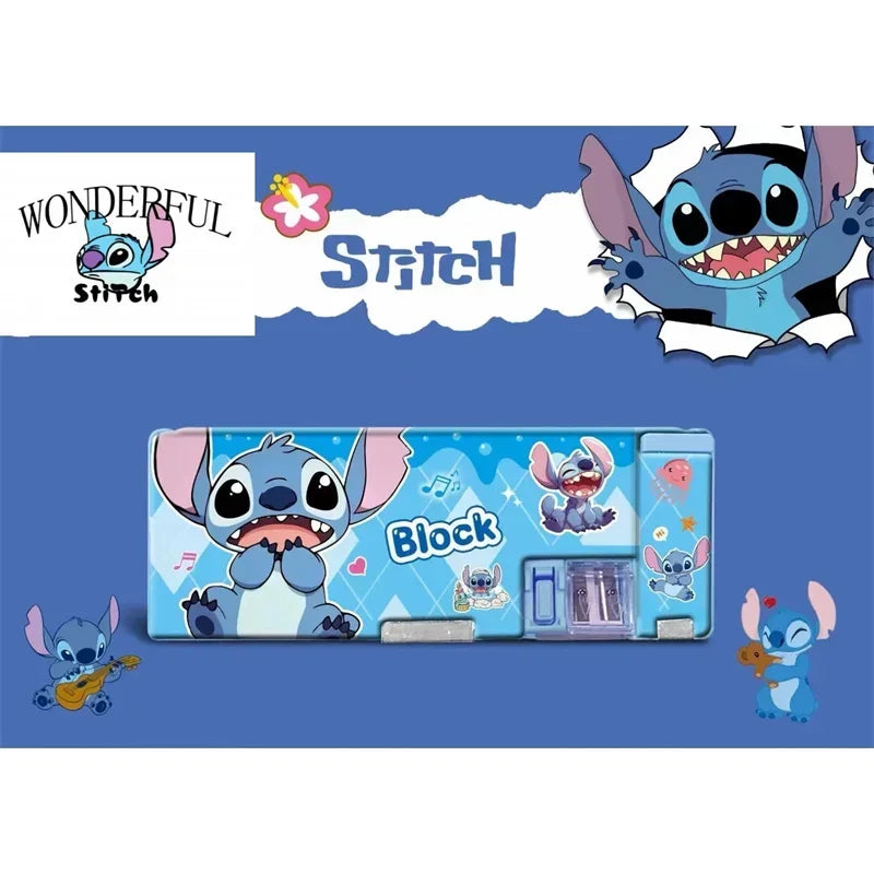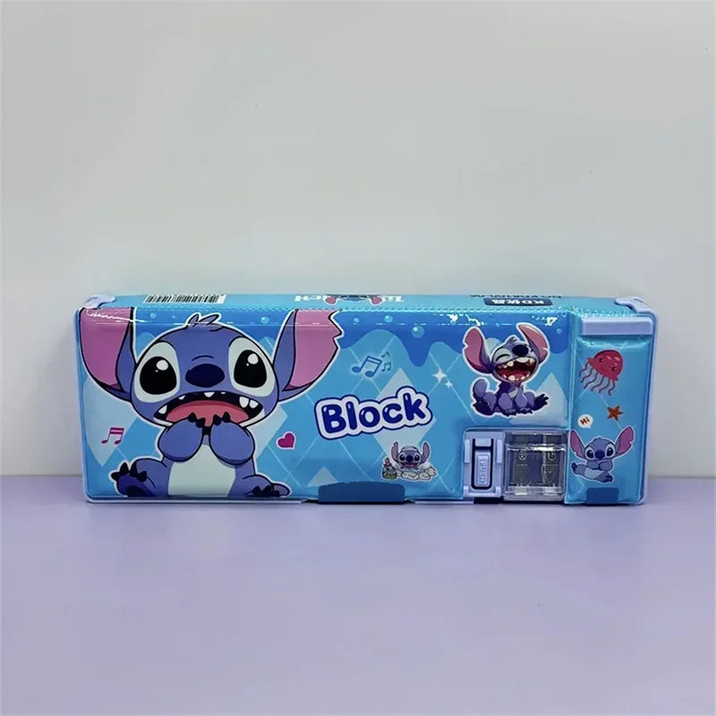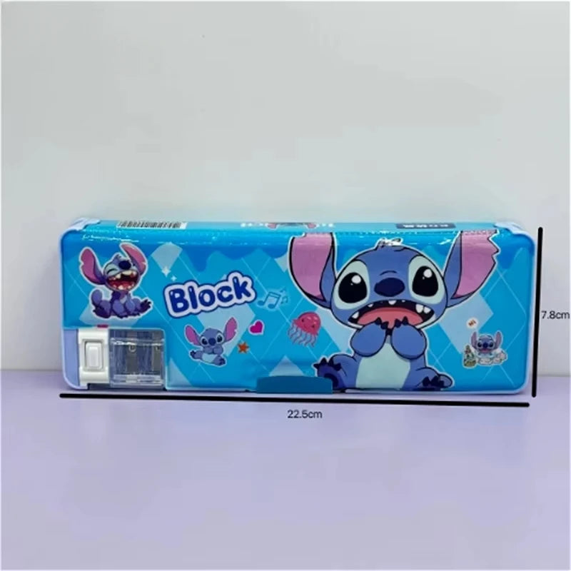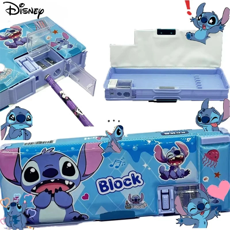 علبة أقلام ديزني مزدوجة الجانبين بتصميم كرتوني – صندوق تخزين أدوات مدرسية للأطفال