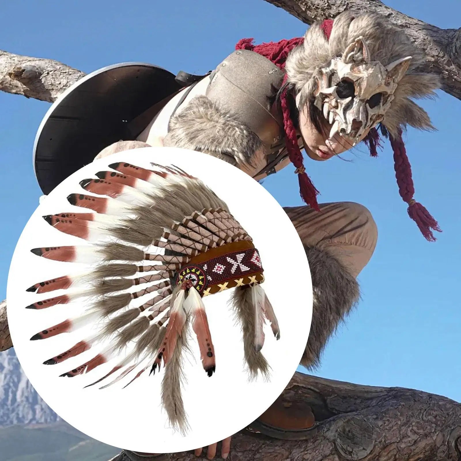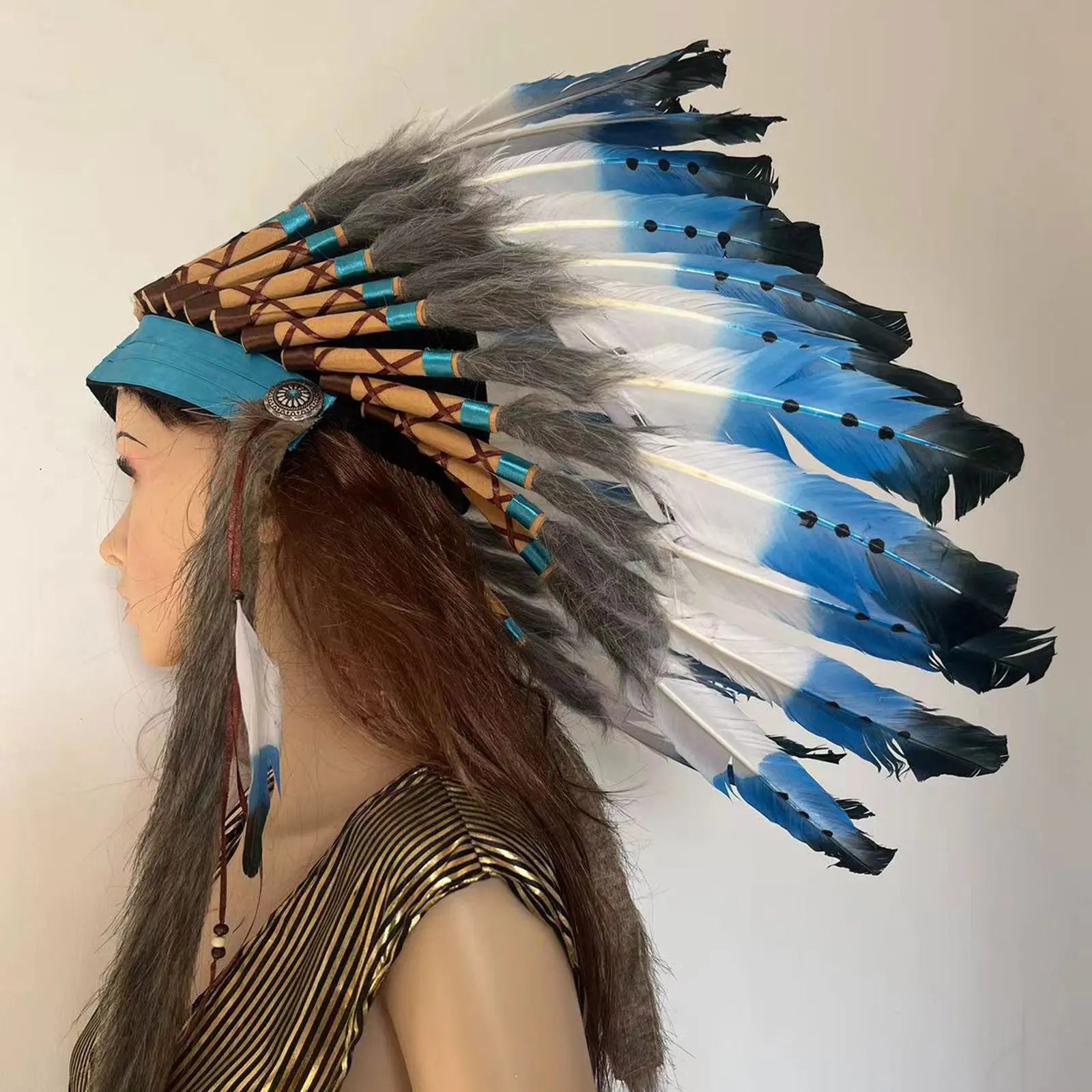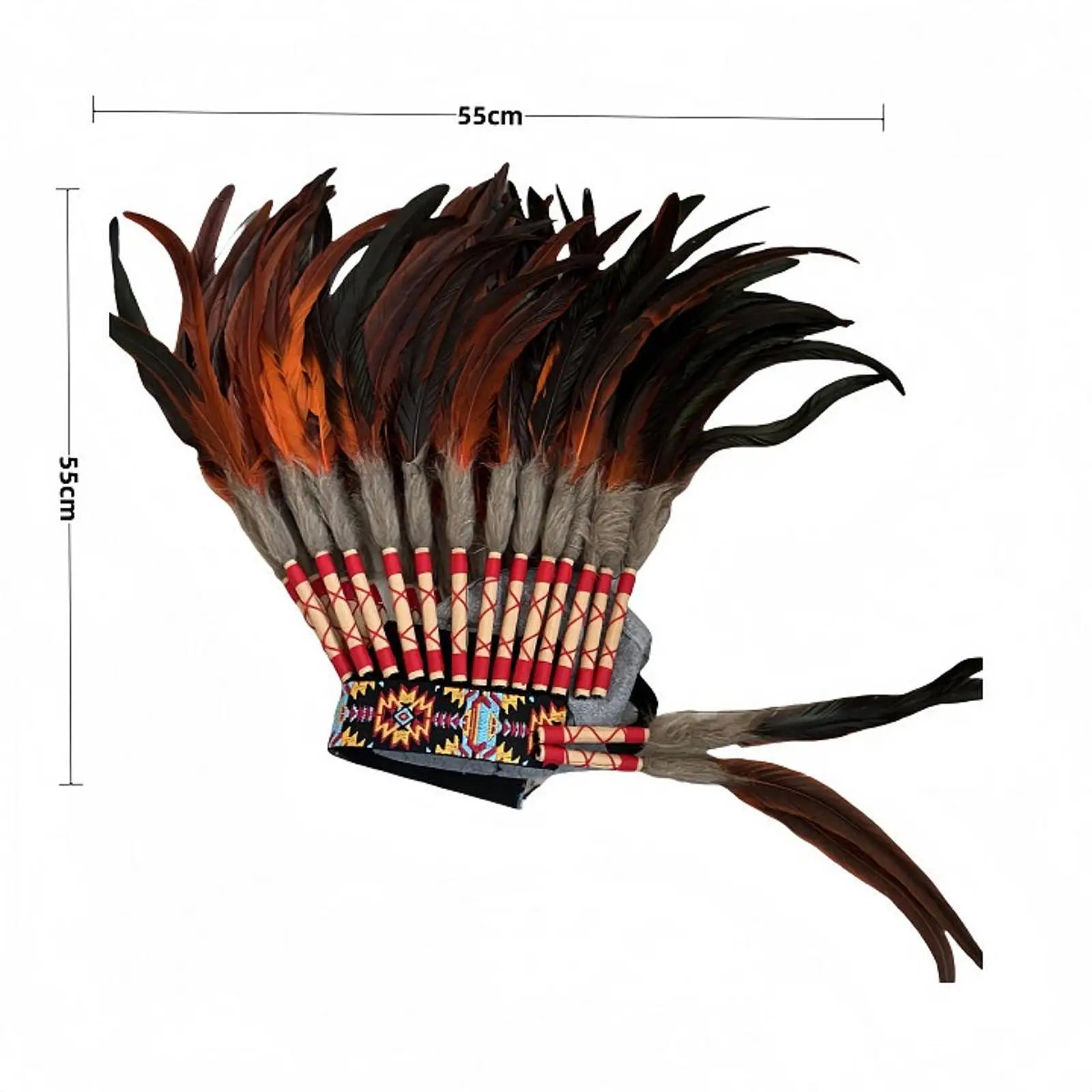 غطاء الرأس الهندي الريشي هذا تصميمه مستوحى من ستايل الهنود الحمر الكلاسيكي – خفيف، مريح، وثابت على الجبهة