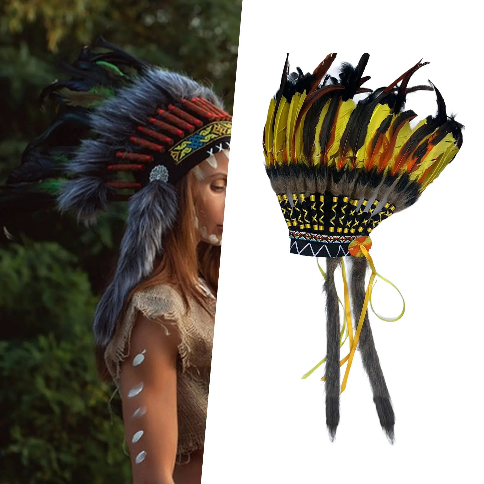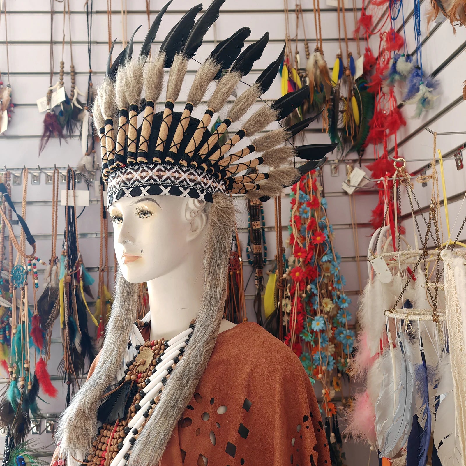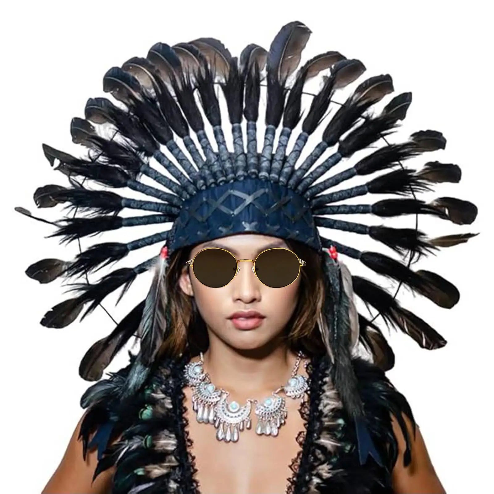 غطاء الرأس الهندي الريشي هذا تصميمه مستوحى من ستايل الهنود الحمر الكلاسيكي – خفيف، مريح، وثابت على الجبهة