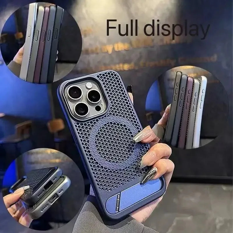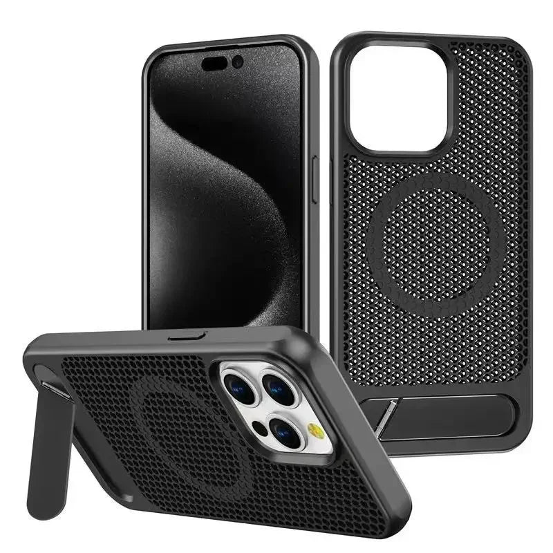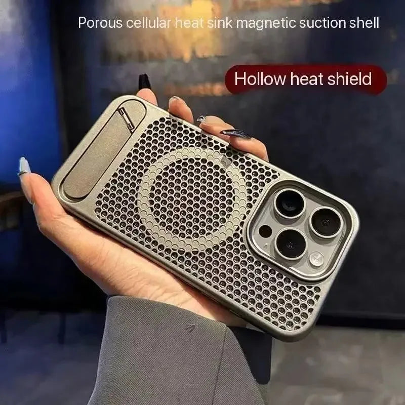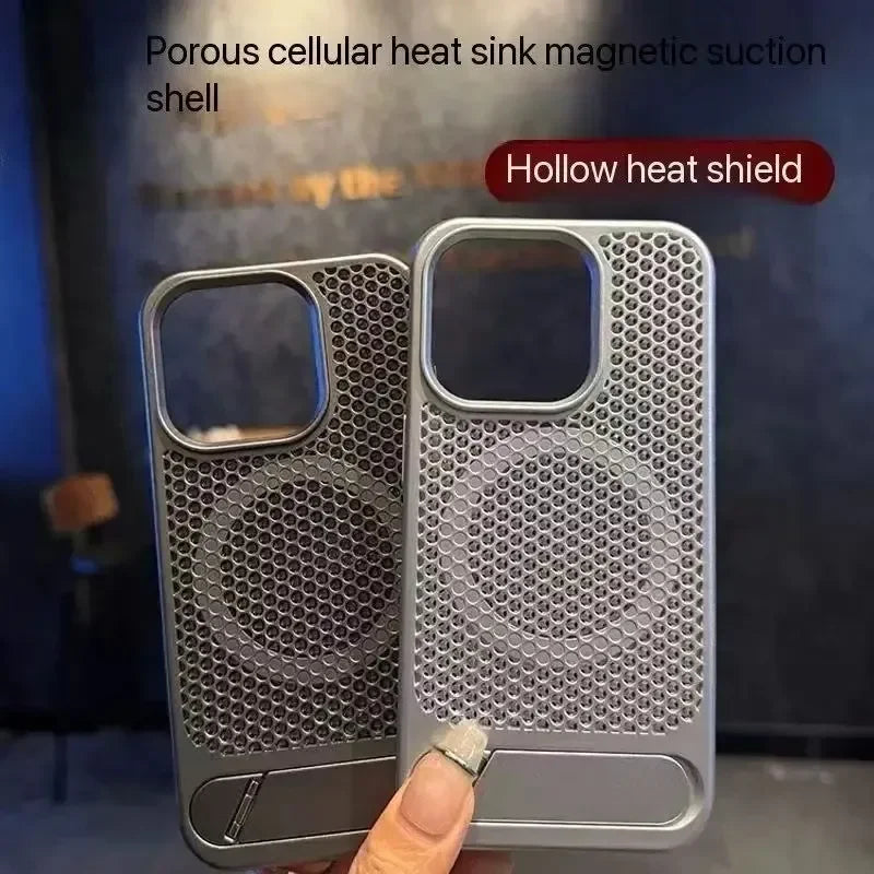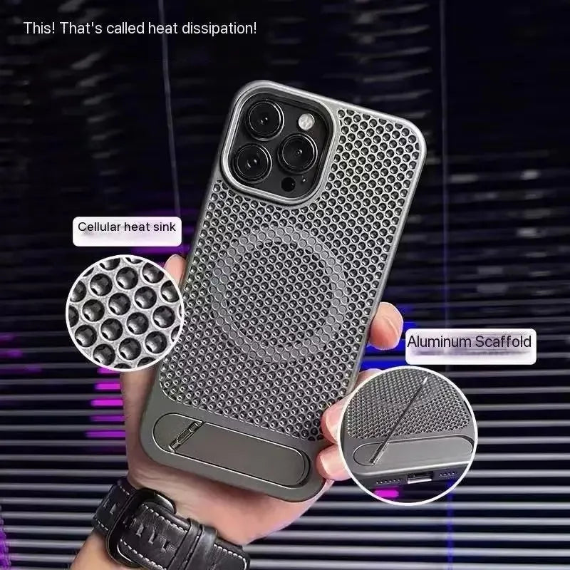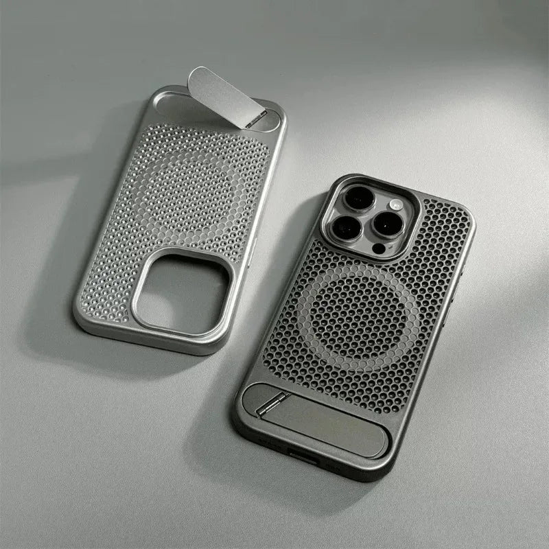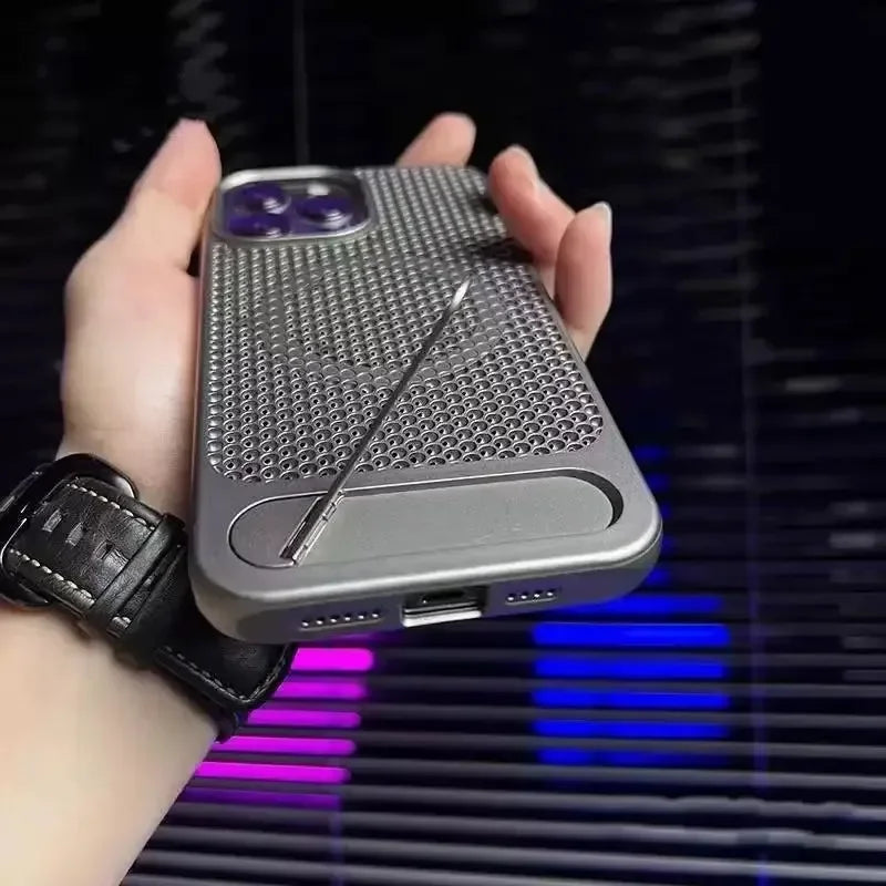 كفر آيفون معدني فائق النحافة مع حامل مخفي قابل للطي – تبديد حرارة وحماية ضد الصدمات