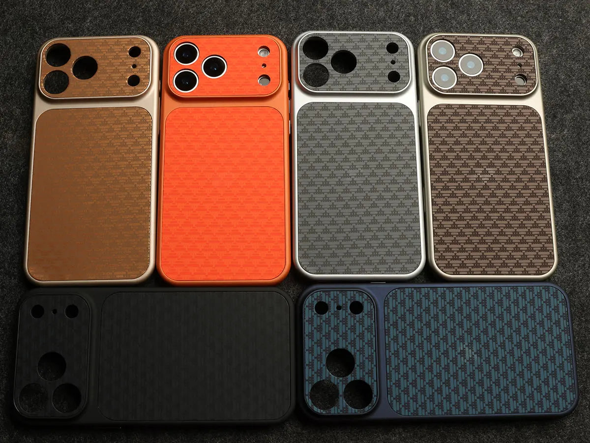 كفر آيفون مقاوم للصدمات بملمس ألياف كربونية مع طلاء PC – إطار برتقالي أنيق