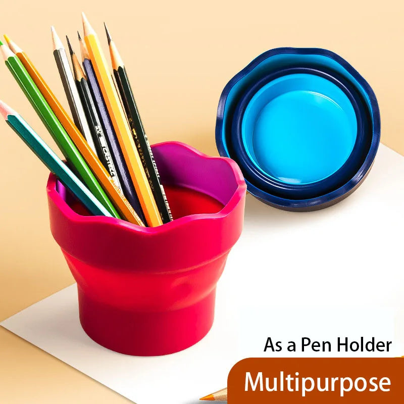 ابتكار ذكي من علامة فنية عريقة – كوب غسيل الفرش من Faber-Castell بتصميم قابل للطي، يجمع بين الراحة، النظافة، والتنقل السلس.