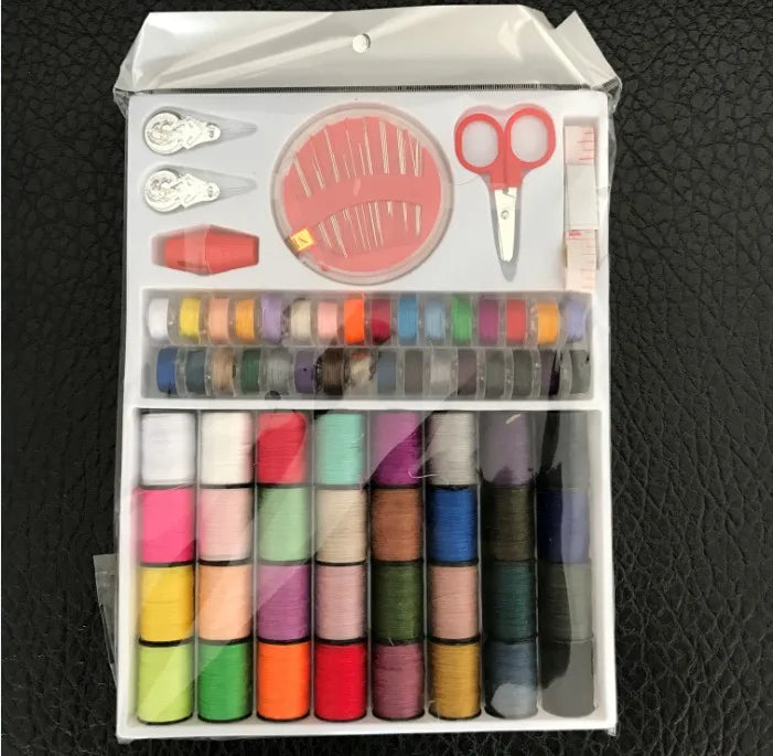 • طقم متكامل يشمل: ماكينة خياطة صغيرة، إبر، خيوط، مقص صغير، وأساسيات الخياطة