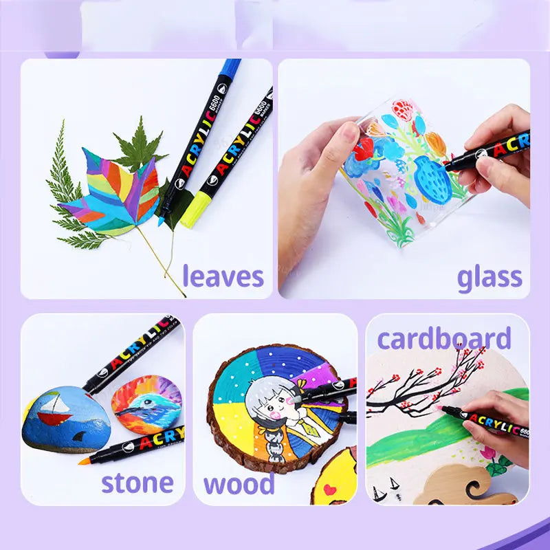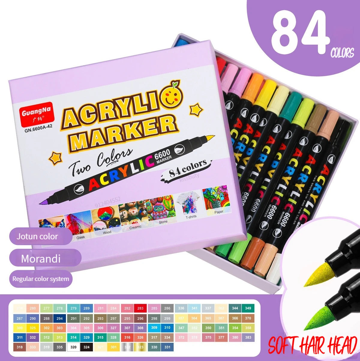 مجموعة ألوان ماركر أكريليك – 84 لون بفرشتين في كل قلم، لتلوين الصخور، الكاليغرافي، والكتابة الفنية