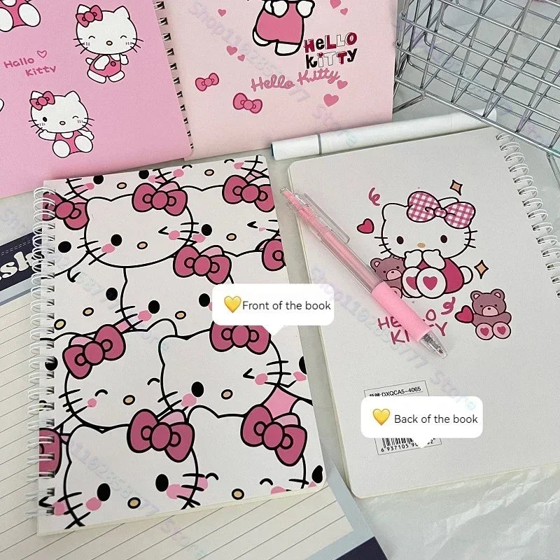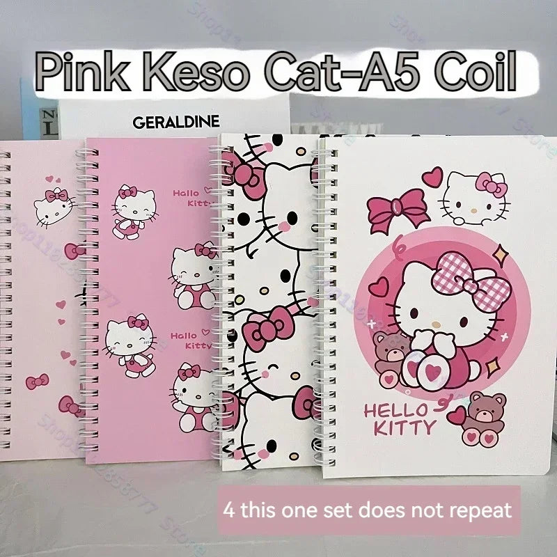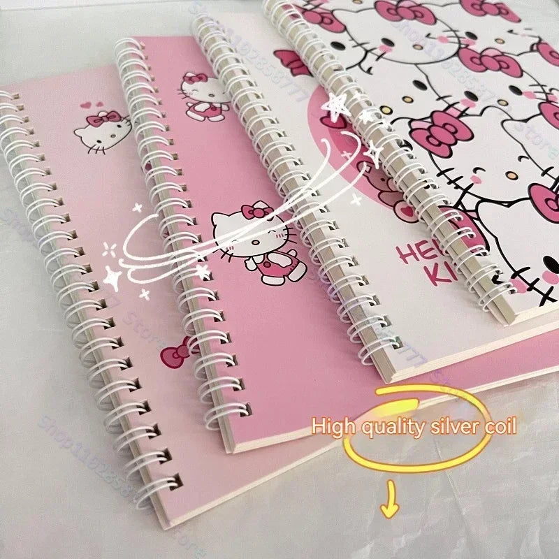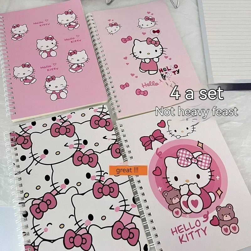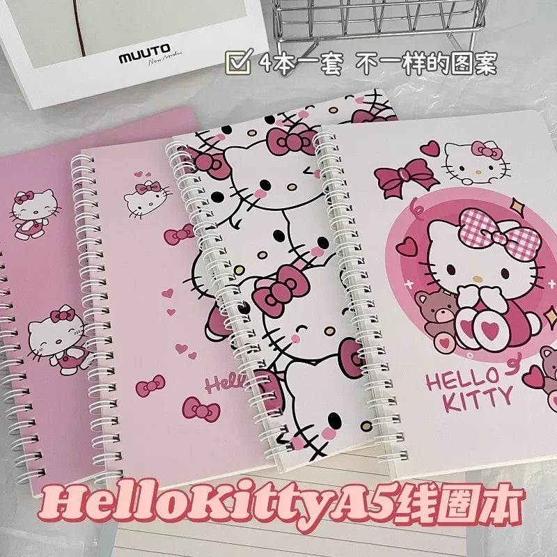 مجموعة جديدة لعام 2024 تتكون من 4 دفاتر حلزونية مقاس A5 من سانريو بتصميم هالو كيتي