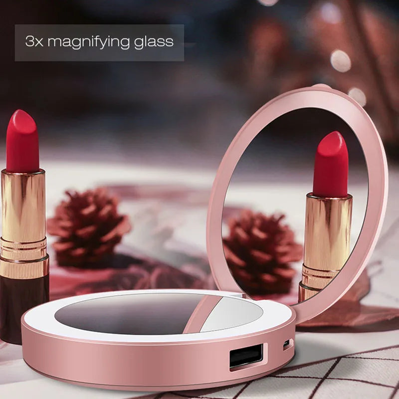 مرآة مكياج مضيئة + بنك طاقة في جهاز واحد – لأنك تستحقين أدوات ذكية تحافظ على أناقتك وشحن جهازك بنفس الوقت.