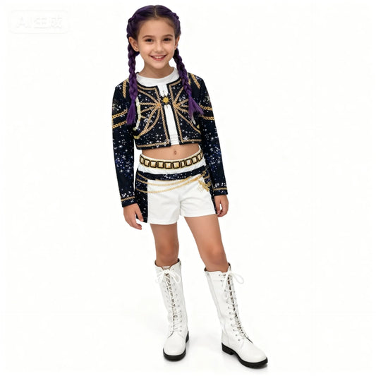 زي كوسبلاي K‑Pop Demon Hunters Huntrix للأطفال (رومي/ميرا/زوي)